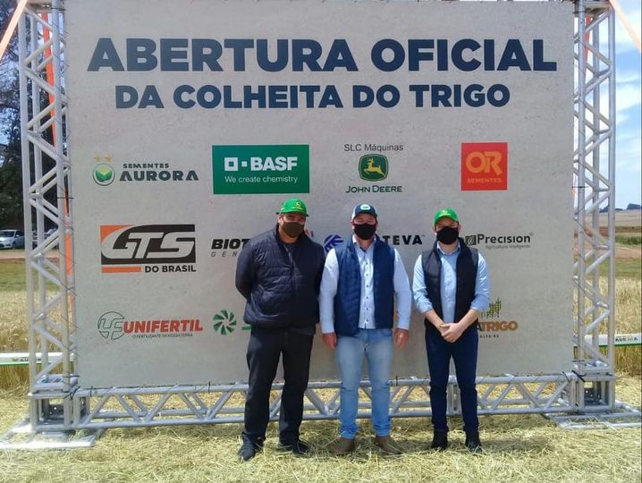 O prefeito Cleber Trenhago, o vice-prefeito Paulo Cezar Schneider de Siqueira e o secretário de Administração e Planejamento, Lucas Ribeiro, estiveram participando na manhã de hoje (18), em Cruz Alta, da ABERTURA OFICIAL DA COLHEITA DO TRIGO, evento de repercussão estadual, que demonstra a importância do cultivo do cereal na região.